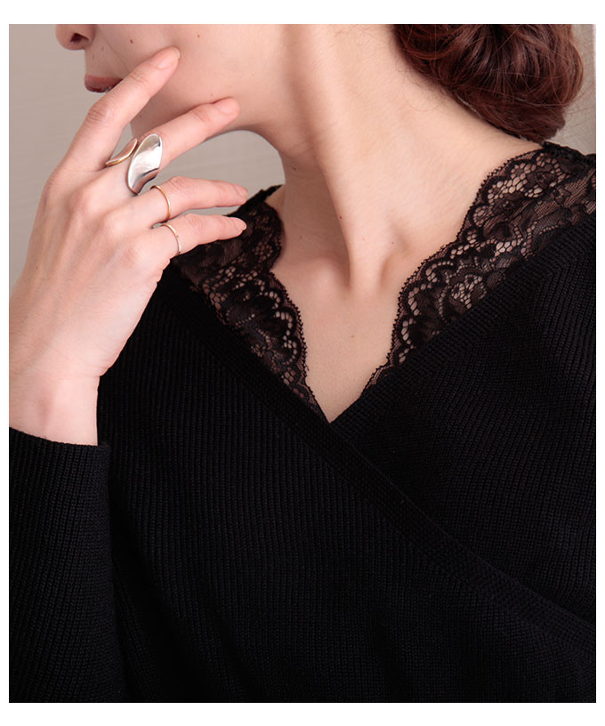 デコルテにレースデザインがほのかに見えてとても女性らしい印象です。