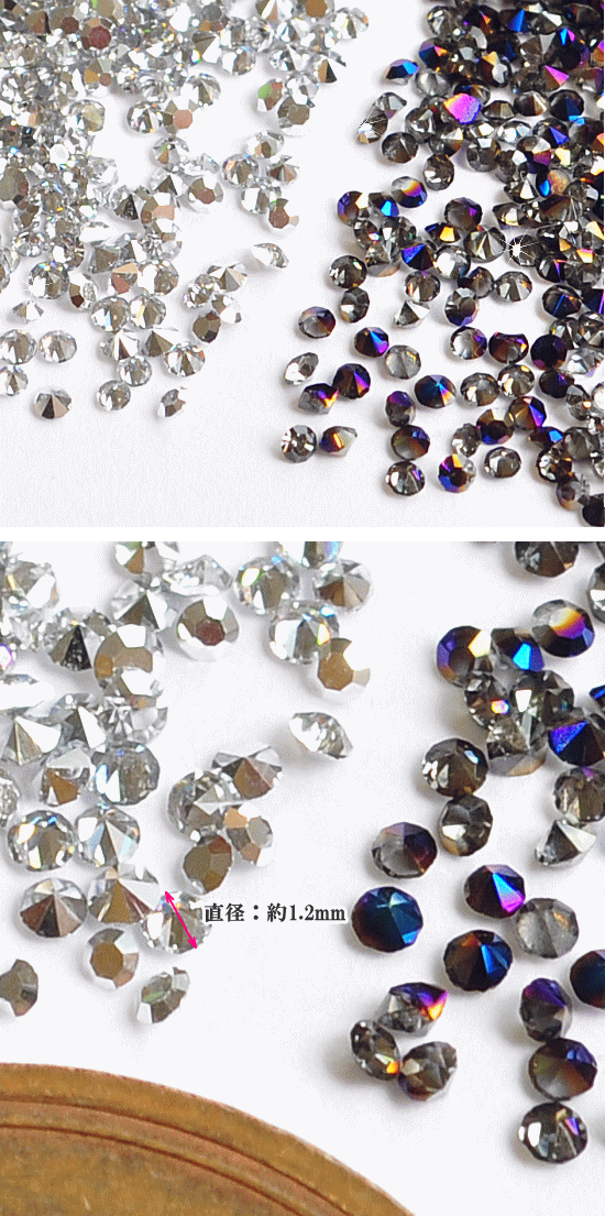SS3よりやや小さめの1.2mmサイズスワロフスキークラスの美しい輝きです。
